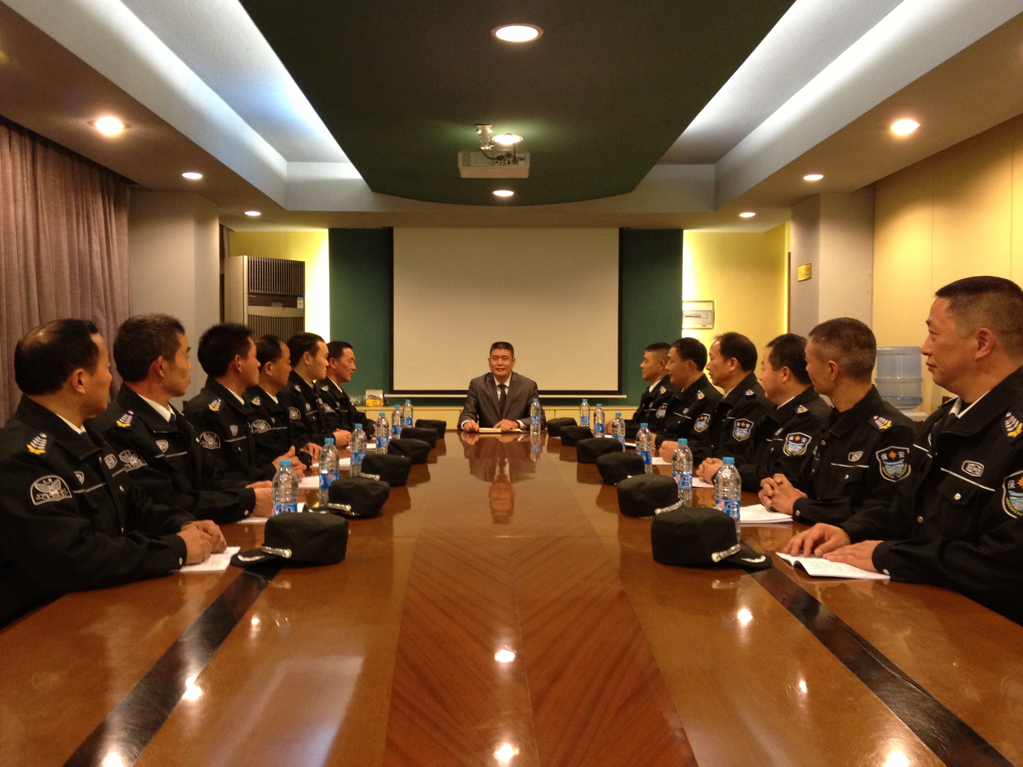 公司总经理薛卫忠在上海八号桥投资(集团)管理有限公司进行安全知识讲座 公司常务副总经理陈卫东(中)组织保安班长学习