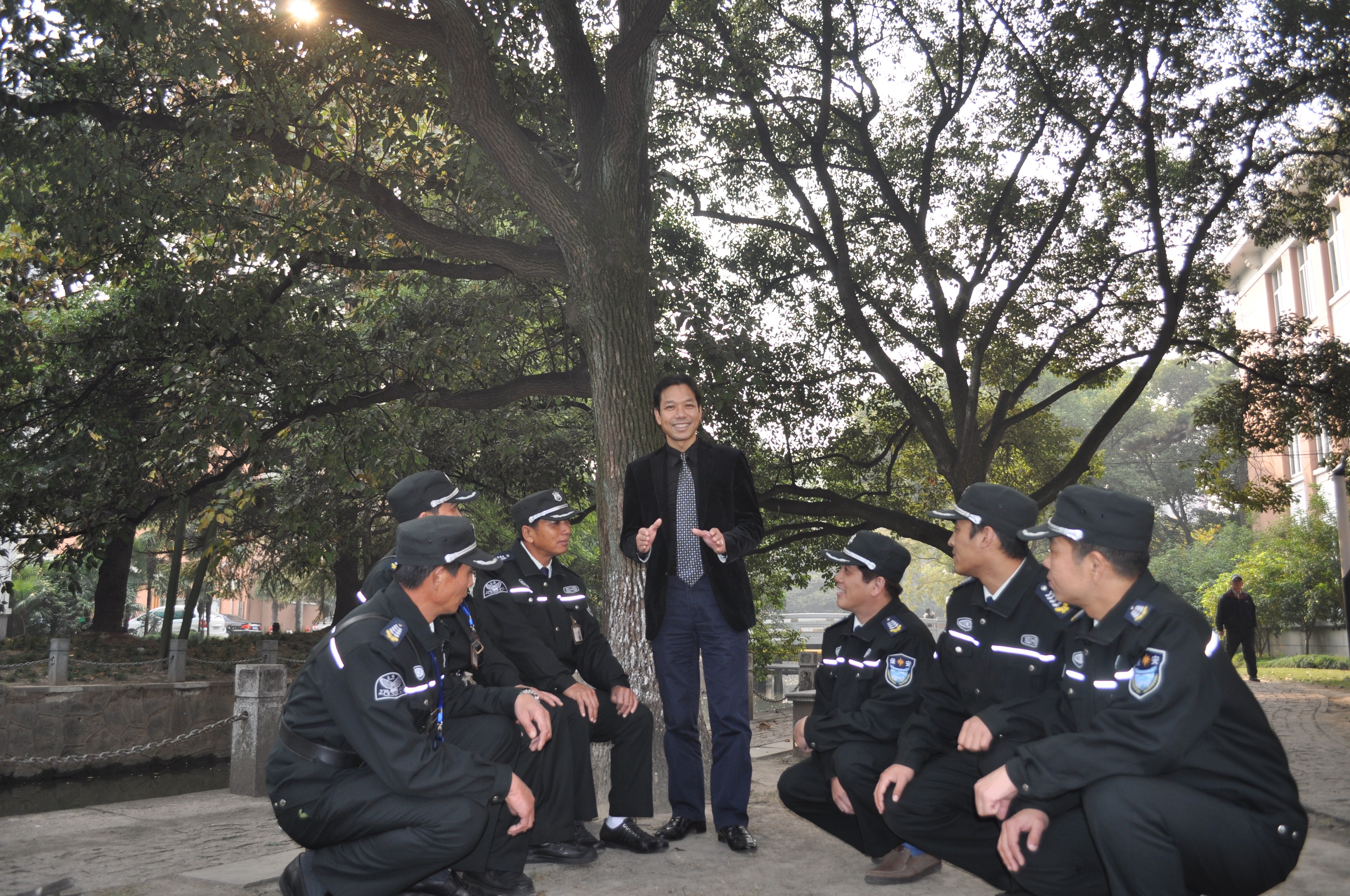 公司总经理薛卫忠在上海八号桥投资(集团)管理有限公司进行安全知识讲座 公司常务副总经理陈卫东(中)组织保安班长学习